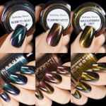 🩶FOREVER WITCH, a black crelly with holo dust and gold/orange/red shifting multichrome magnetic effect.
