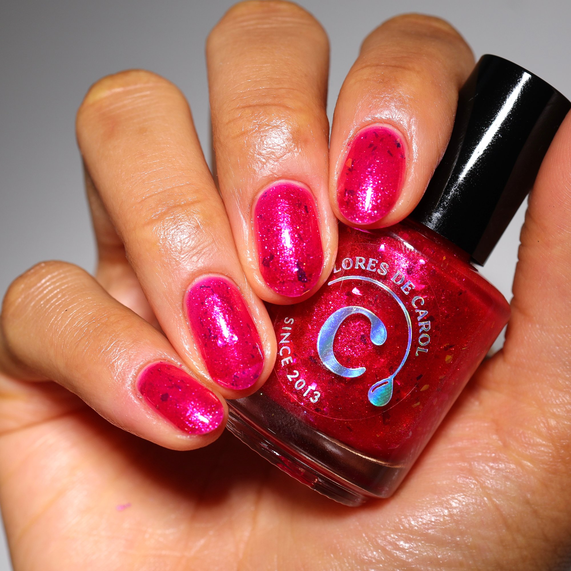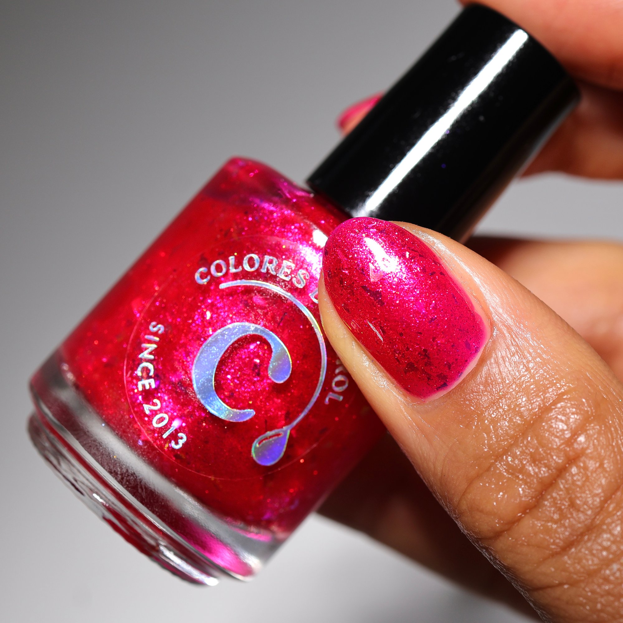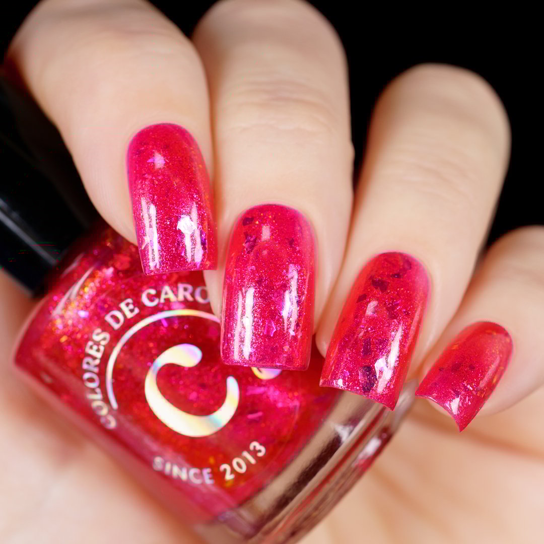 A vibrant hot reddish pink shimmer bursting with luminous sparkle and iridescent Mermaid flakes. Bold, playful, and impossible to ignore, this shade is ready to steal the spotlight like the brightest bloom in the garden.