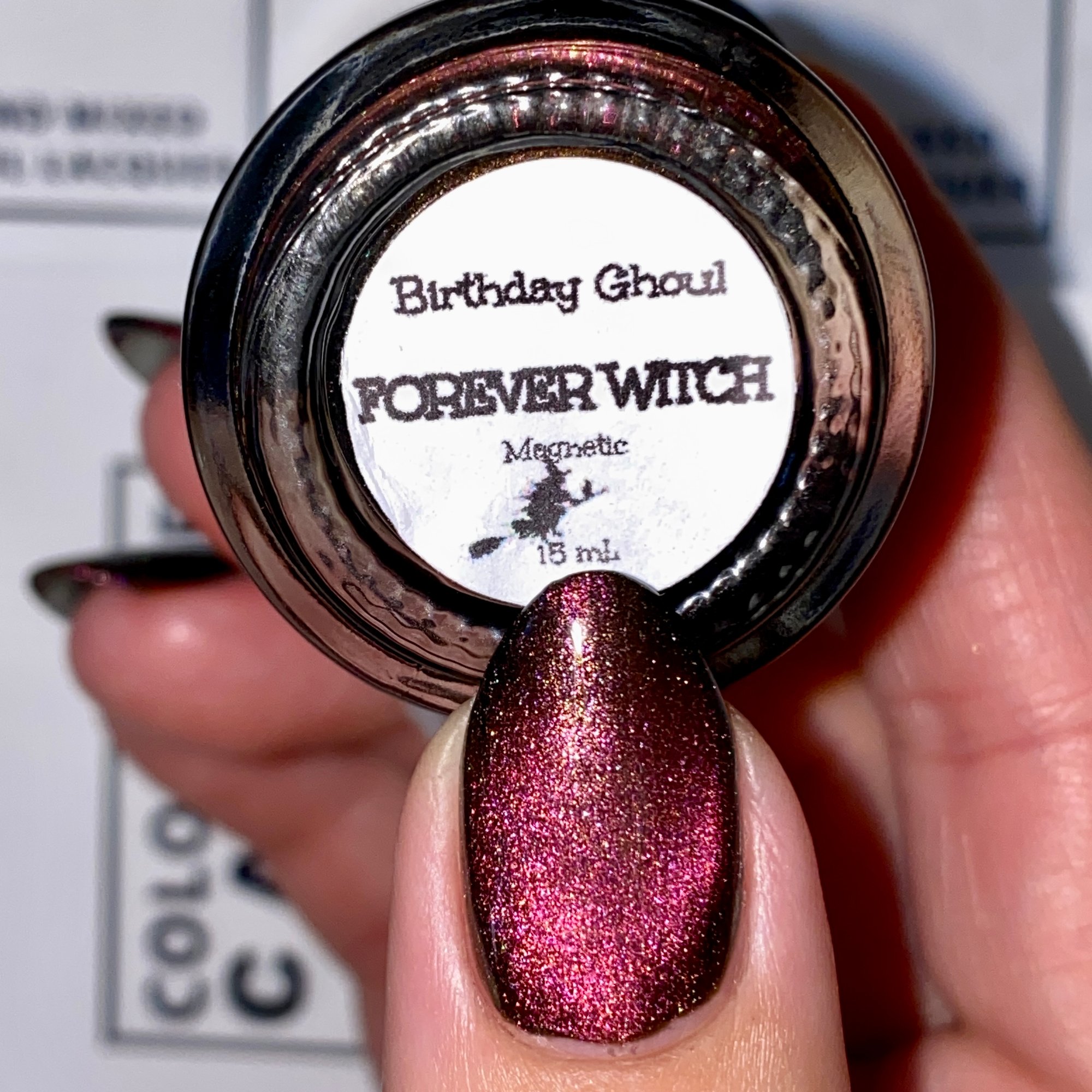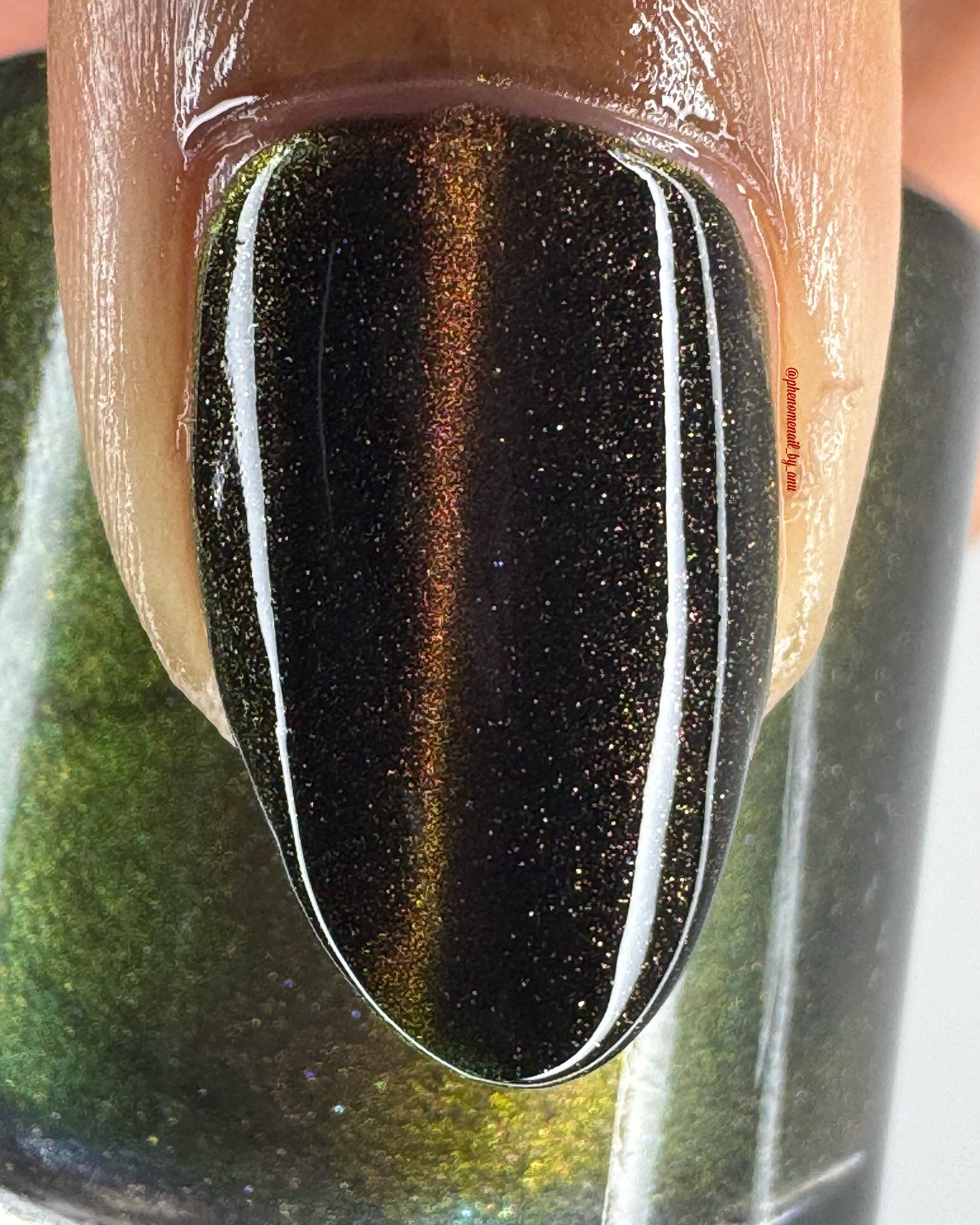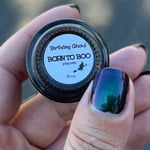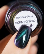 Born to Boo, a black crelly with holo dust and blue/green/purple multichrome magnetic effect.