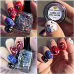 CURSE OF THE MOON, (topper) a clear base with holographic moons, stars, lightning bolts, dots and hex.