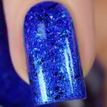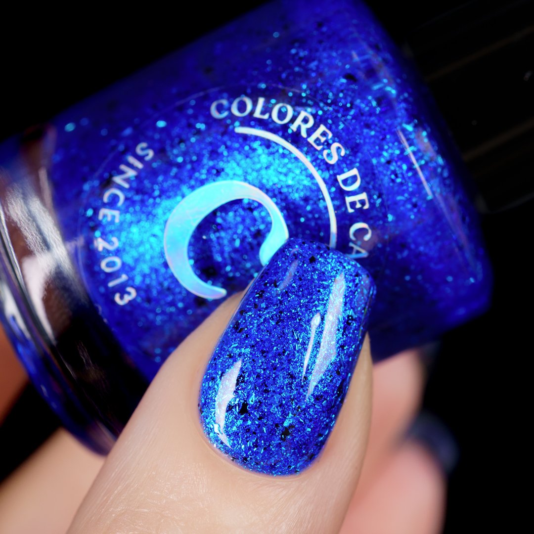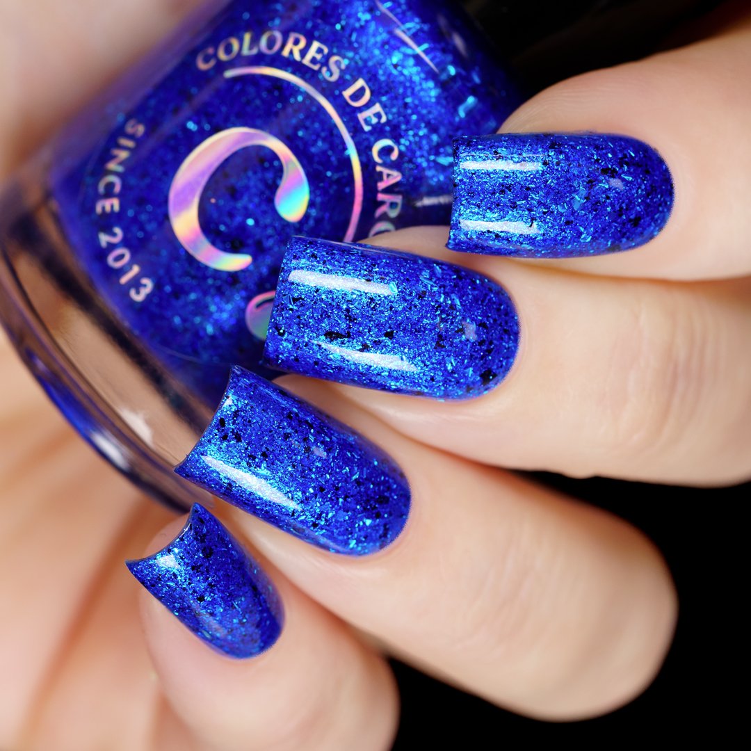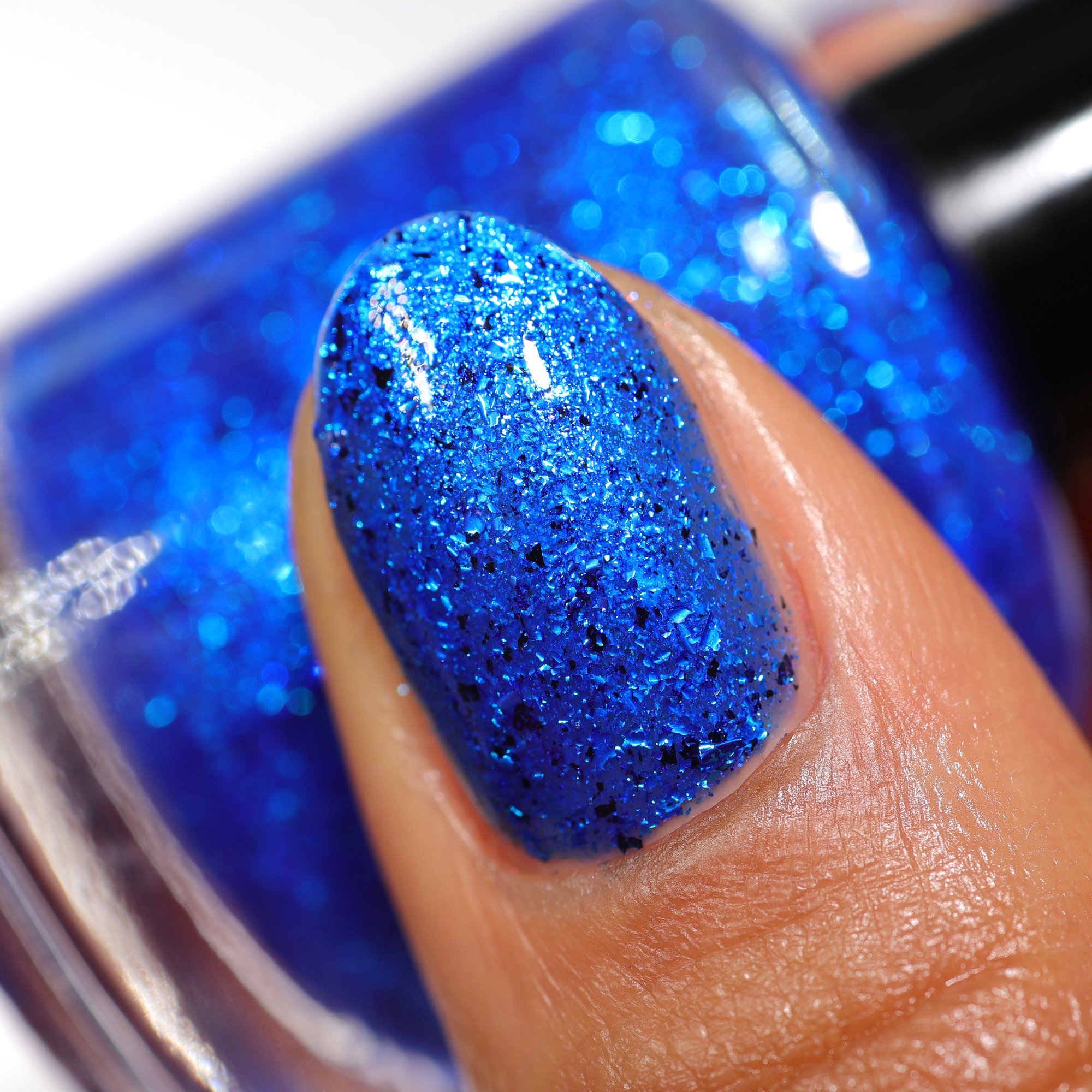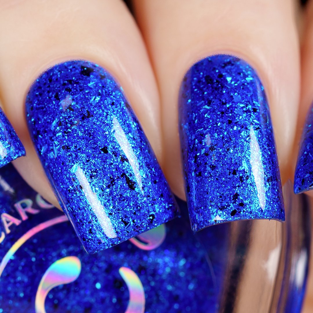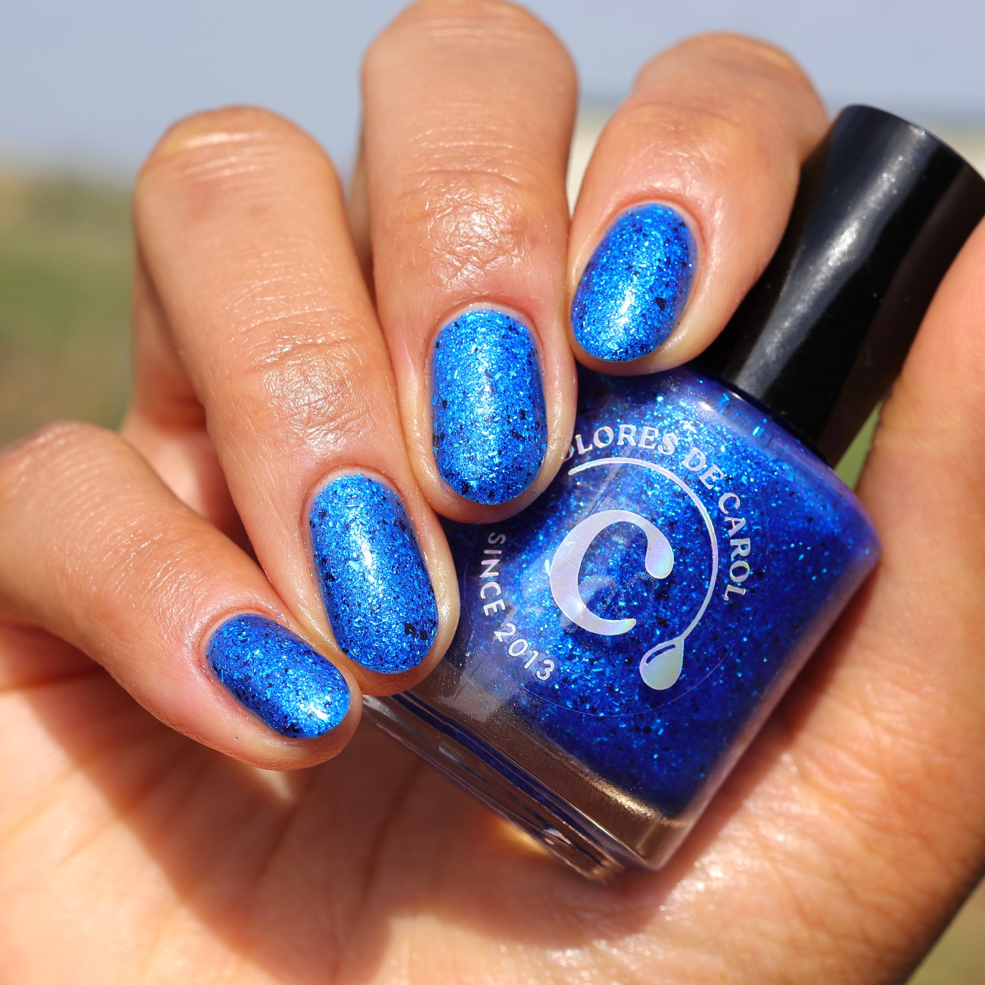 A rich ocean blue polish loaded with sparkling shimmer that mimics sunlight dancing on water with blue and black micro flakes. Deep, radiant, and mesmerizing, it brings a splash of spring adventure to your manicure.