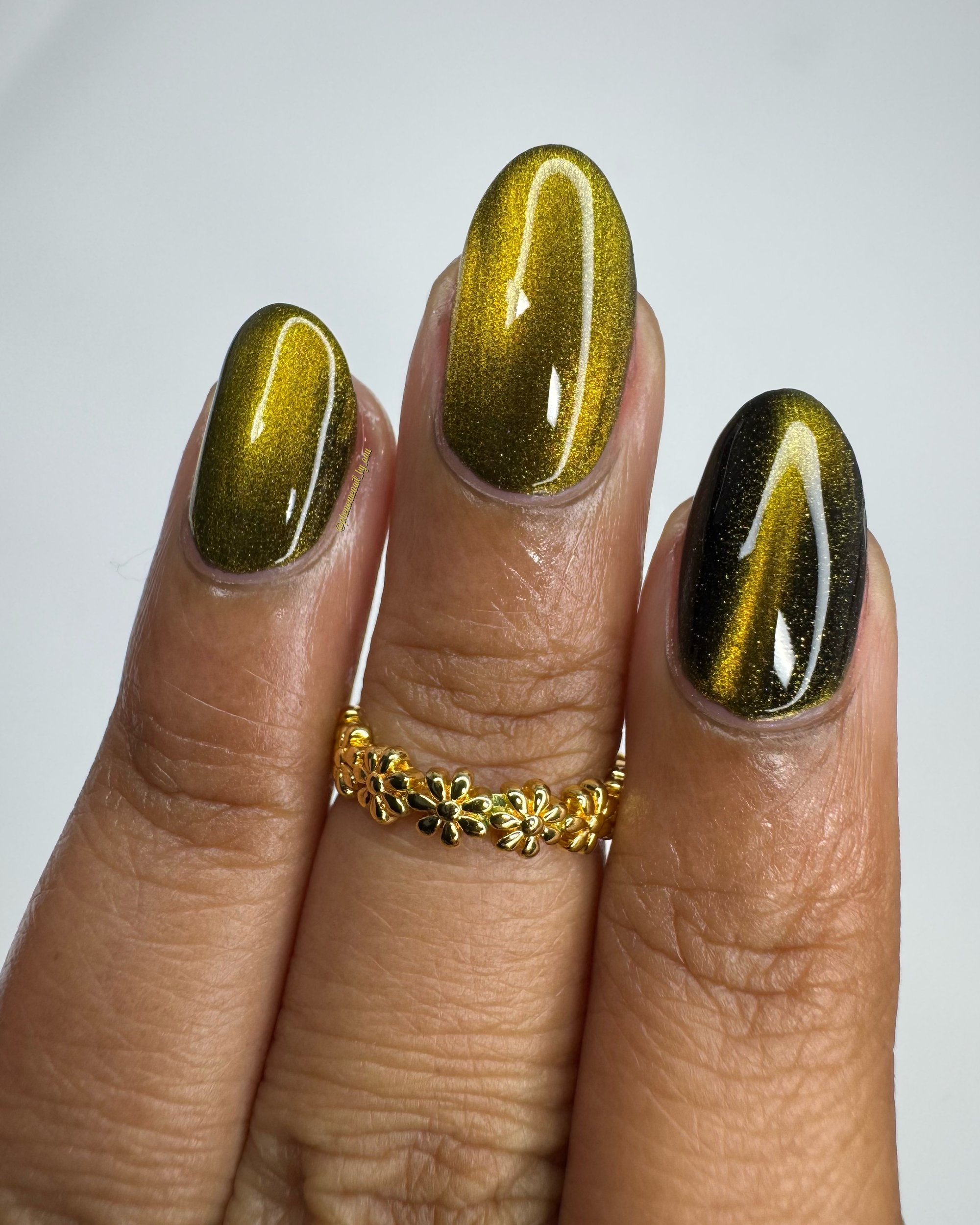 Ghoulfriends Only, a black crelly with holo dust and green/copper/gold multichrome magnetic effect.
