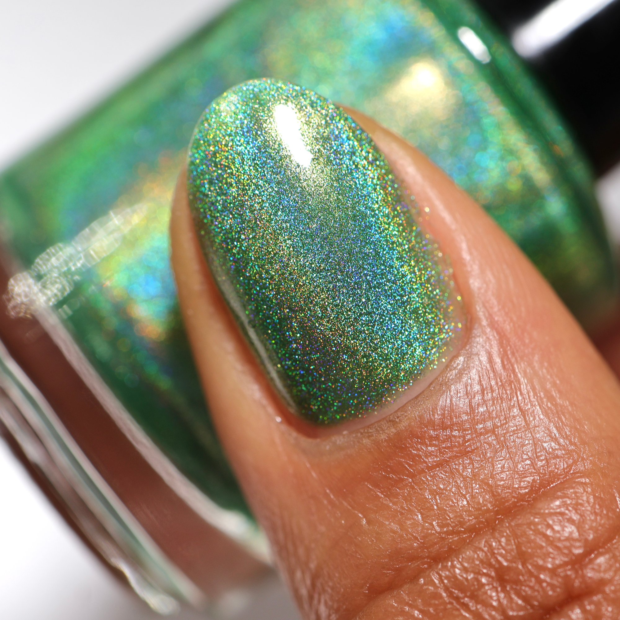 A refreshing mint green linear holographic polish that shifts beautifully in the sunlight. Bright, crisp, and energizing, this shade is like the first fresh breeze of spring.