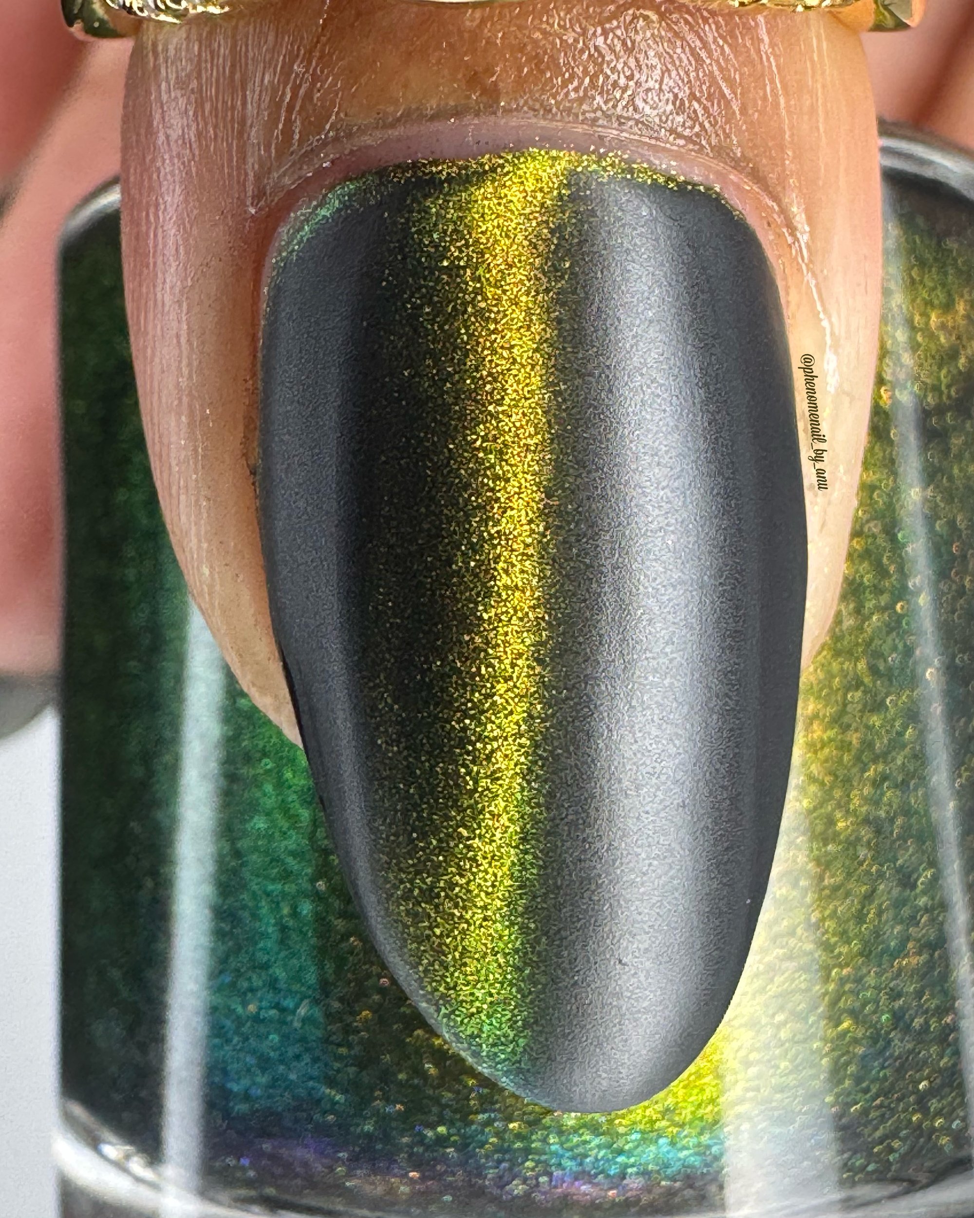 NOCTURNA, a black jelly with green/copper/orange multichrome magnetic effect.