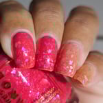OOPS…I BOUGHT POLISH AGAIN, (Thermal) raspberry pink (cold) to yellowish green (warm) with candy Aurora flakes.