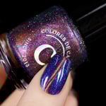 A deep indigo base filled with holographic and reflective glitter, brought to life with a glowing magnetic effect that shifts gold, pink, and orange, like light breaking through even the darkest moments.
