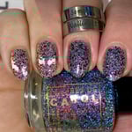 WITCH’S WINE, a full coverage color shifting reflective glitter (blue/pink/green) and black micro flakes.